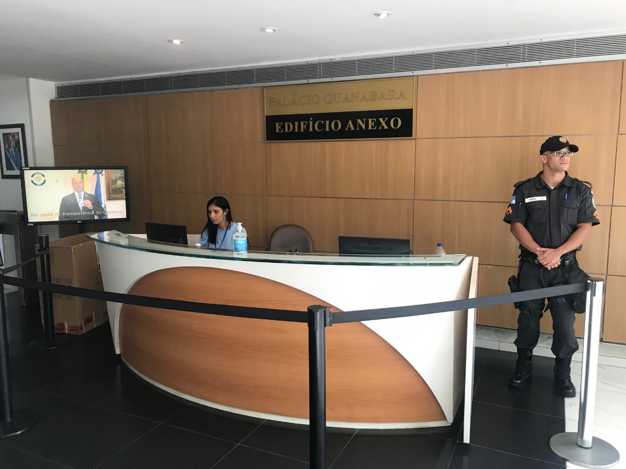 Também está sendo adotado a total cautela durante a recepção de visitantes e funcionários no Palácio Guanabara. Além de ser disponibilizado álcool em gel para os que se identificam no balcão das recepções do prédio principal e prédio anexo, foi realizada com separa fila a distância de um metro e meio para manter a proteção necessária ao público e aos agentes que estão realizando os cadastros de identificação.