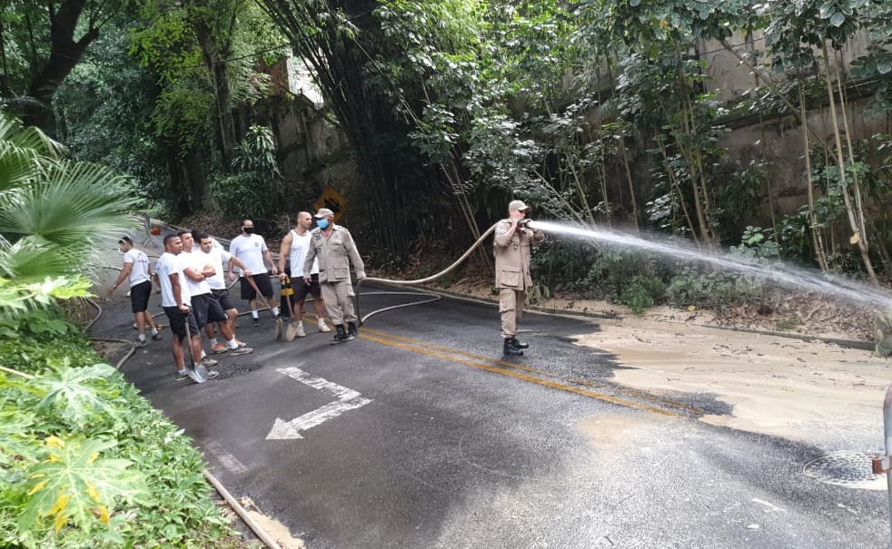A ação se deu por conta de um vazamento de água proveniente da tubulação que abastece o Palácio Guanabara, iniciada no dia 03 deste mês e que na data de hoje fora solucionado. Devida à força da água, parte do barranco da alameda que dá acesso à 1ª CIPM cedeu, sendo necessária a interdição da via da alameda em certos momentos, devido ao acúmulo de água no solo, de forma preventiva.